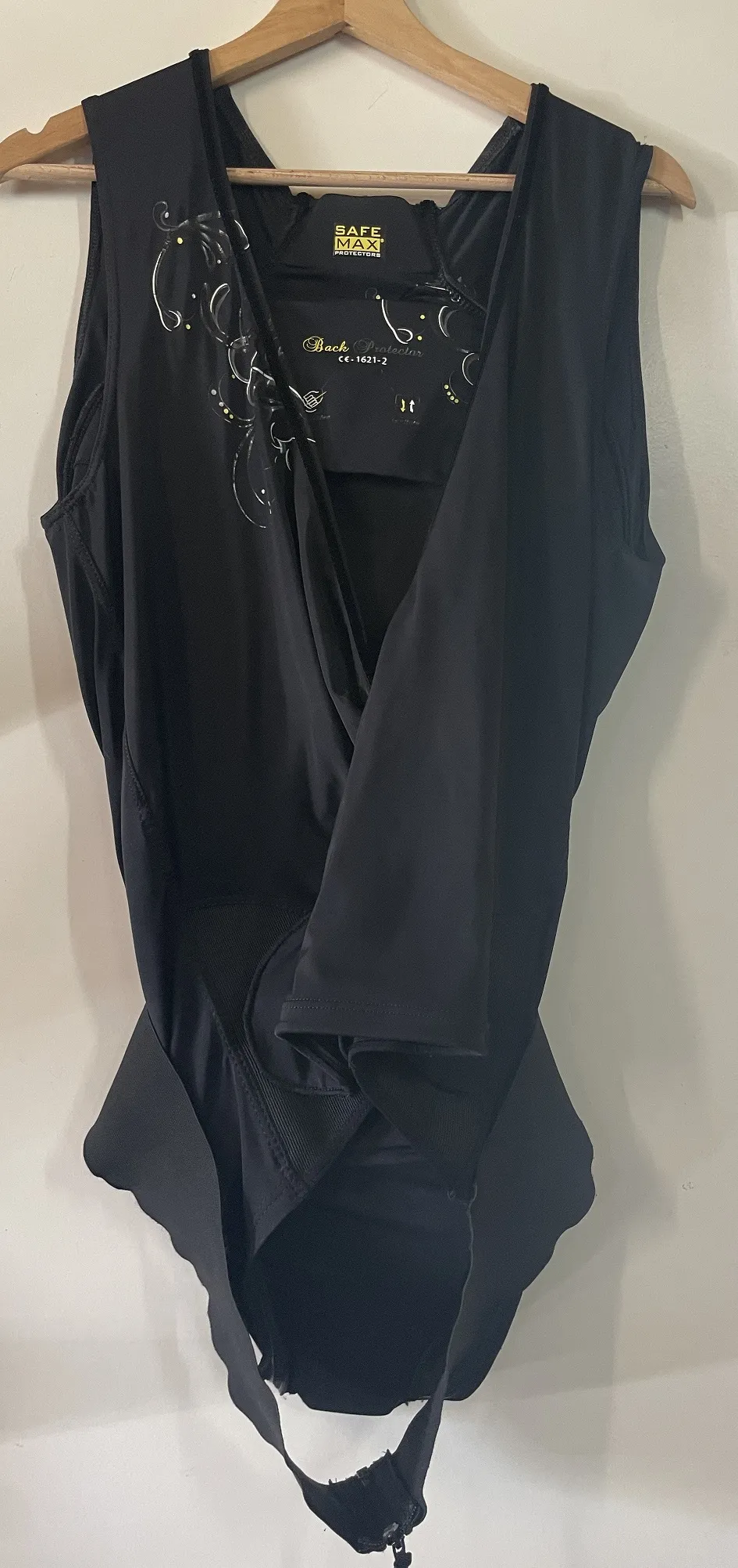 Nous vendons pour le compte de Cindy, sa dorsale gilet de marque SafeMax, pour dame, taille L. La dorsale est en très bon état général.